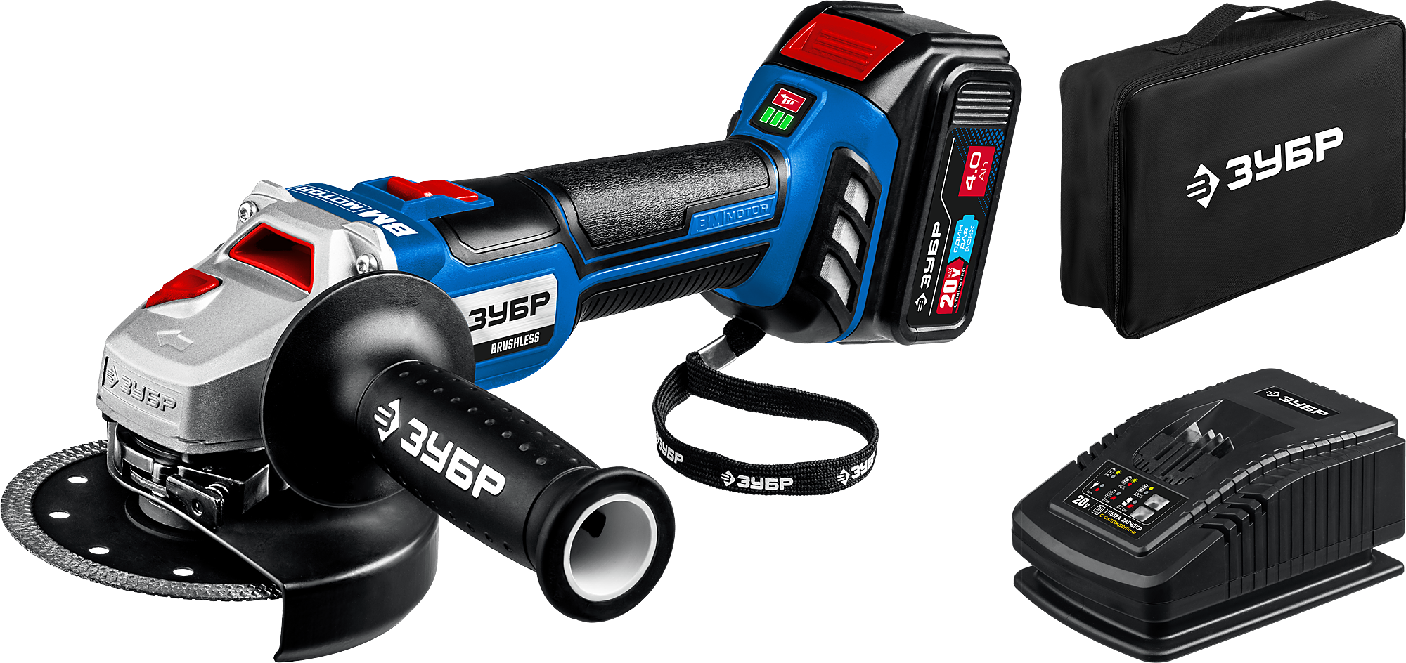 Углошлифовальная машина ЗУБР АВ-125-41 аккумуляторная бесщеточная "ПРОФЕССИОНАЛ" 20В
