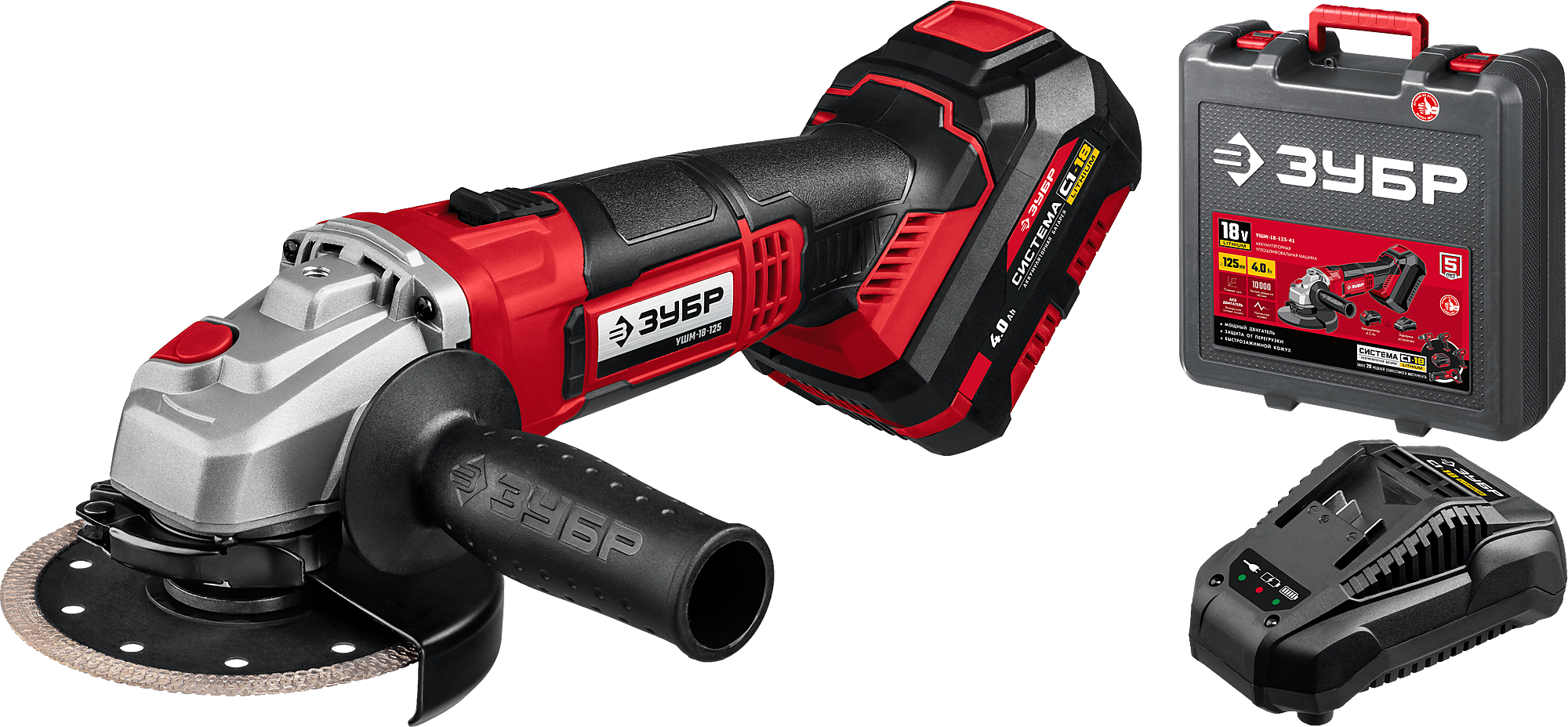 Углошлифовальная машина ЗУБР УШМ-18-125-41 аккумуляторная "МАСТЕР" 18В