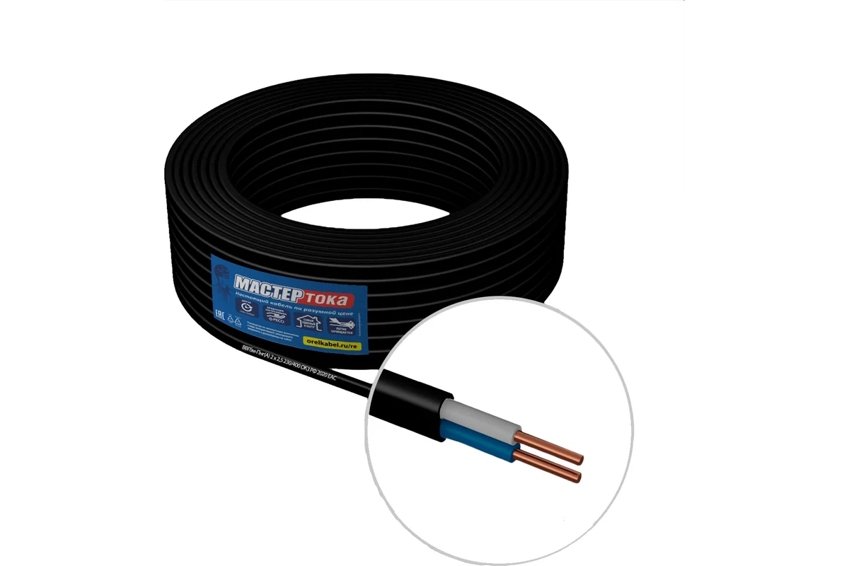 Кабель ВВГбм-Пнг(А) 2Х2.5 чер 50м Мастер Тока ТУ