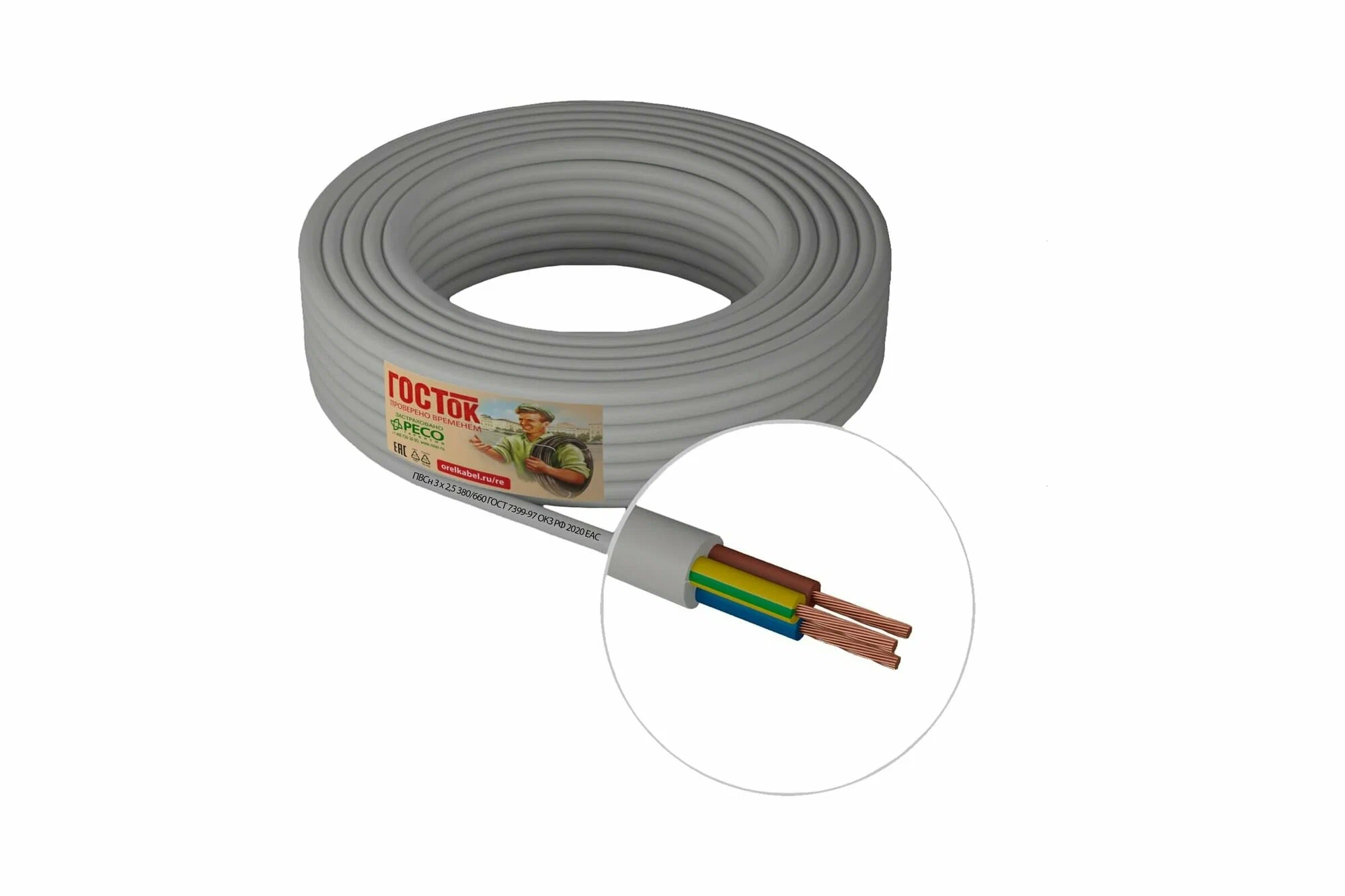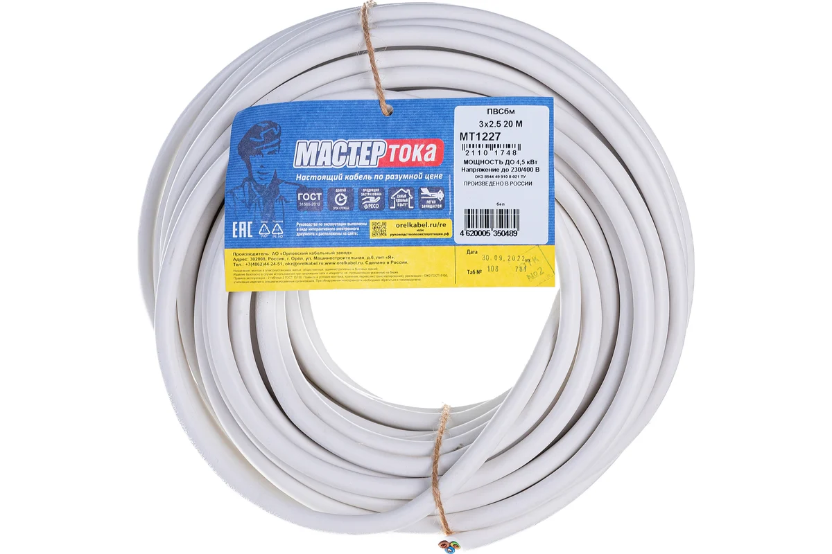 Провод ПВСн 3Х2.5 бел 5м ГОСТок