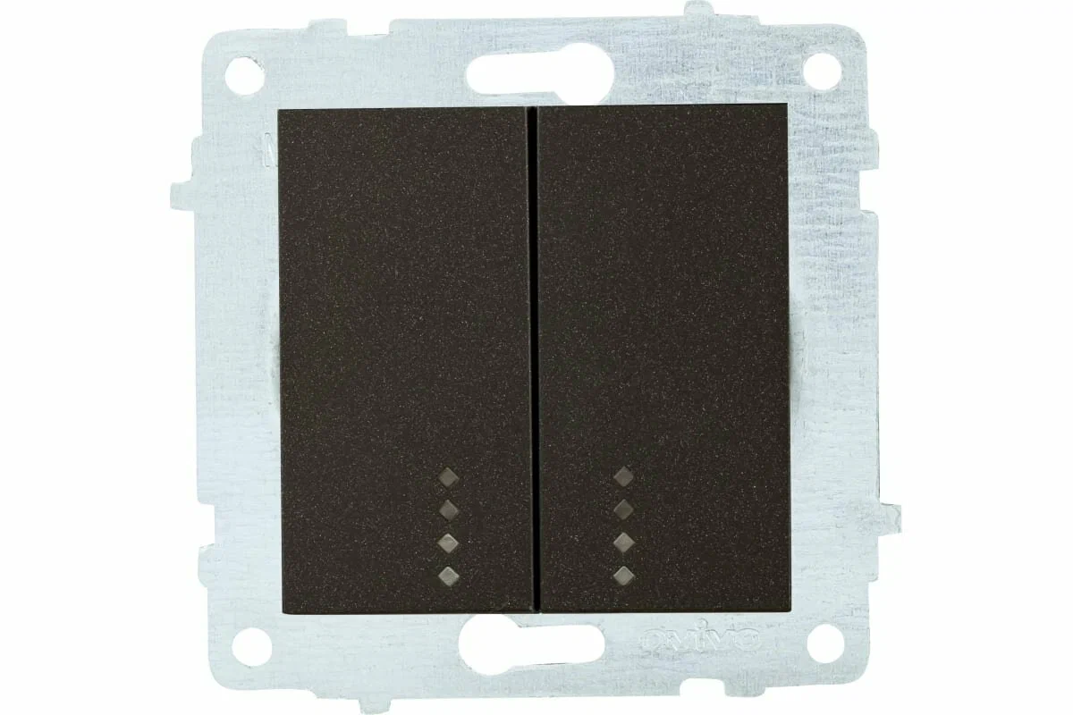 Выключатель двухклавишный с индикаторм 10А мокка (ко всем рамкам) 600-000219-203 OVIVO СУ