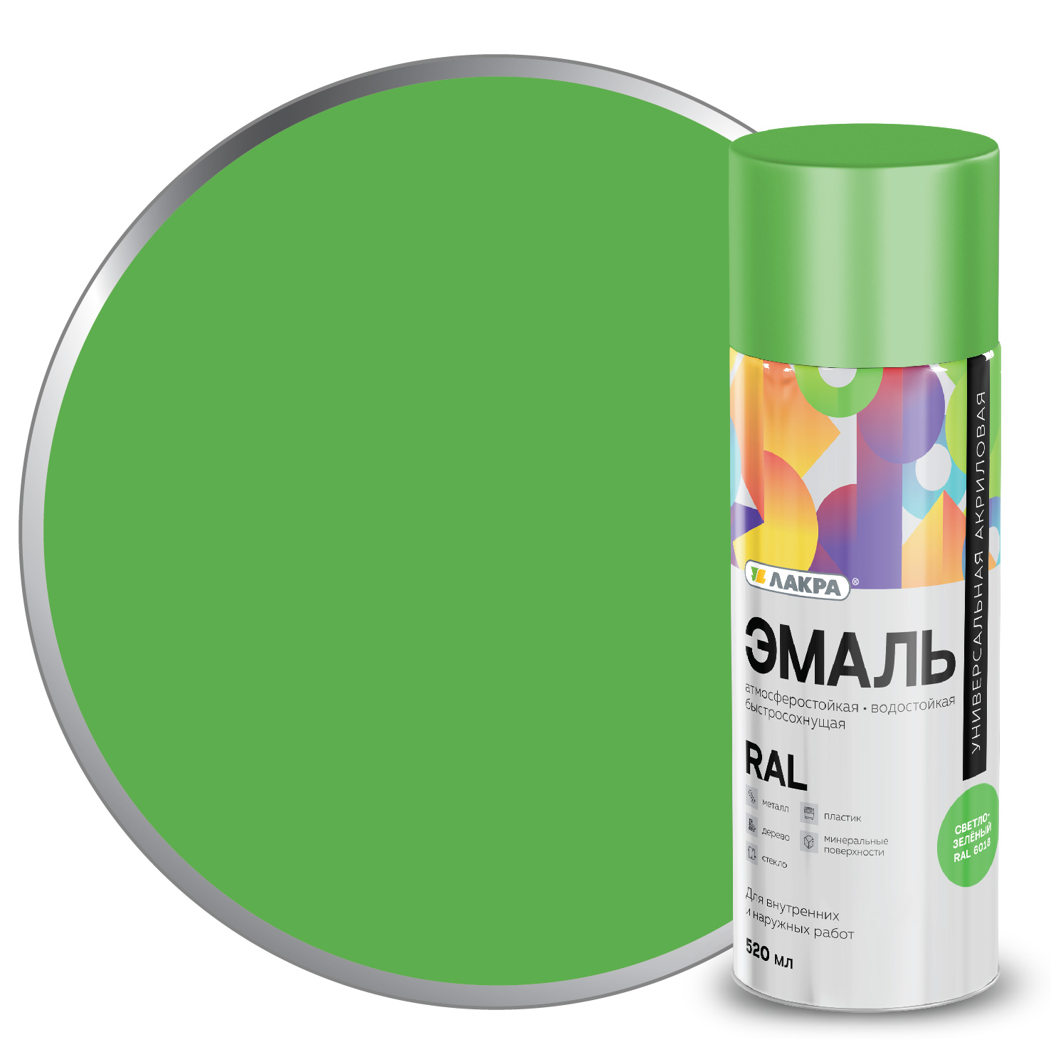 Эмаль аэрозольная ЛАКРА RAL акриловая RAL6018 светло-зеленая 520мл