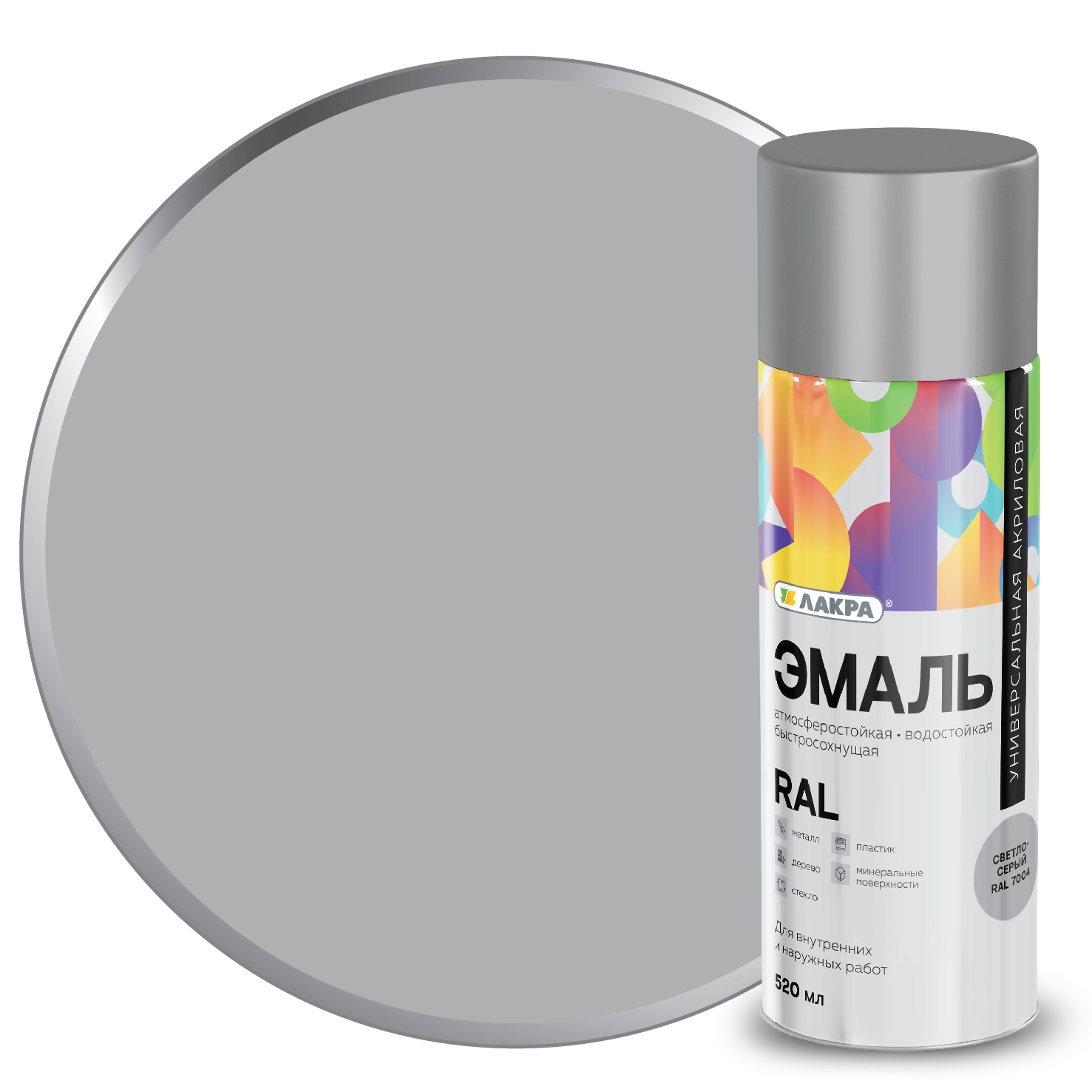 Эмаль аэрозольная ЛАКРА RAL акриловая RAL7004 светло-серая 520мл