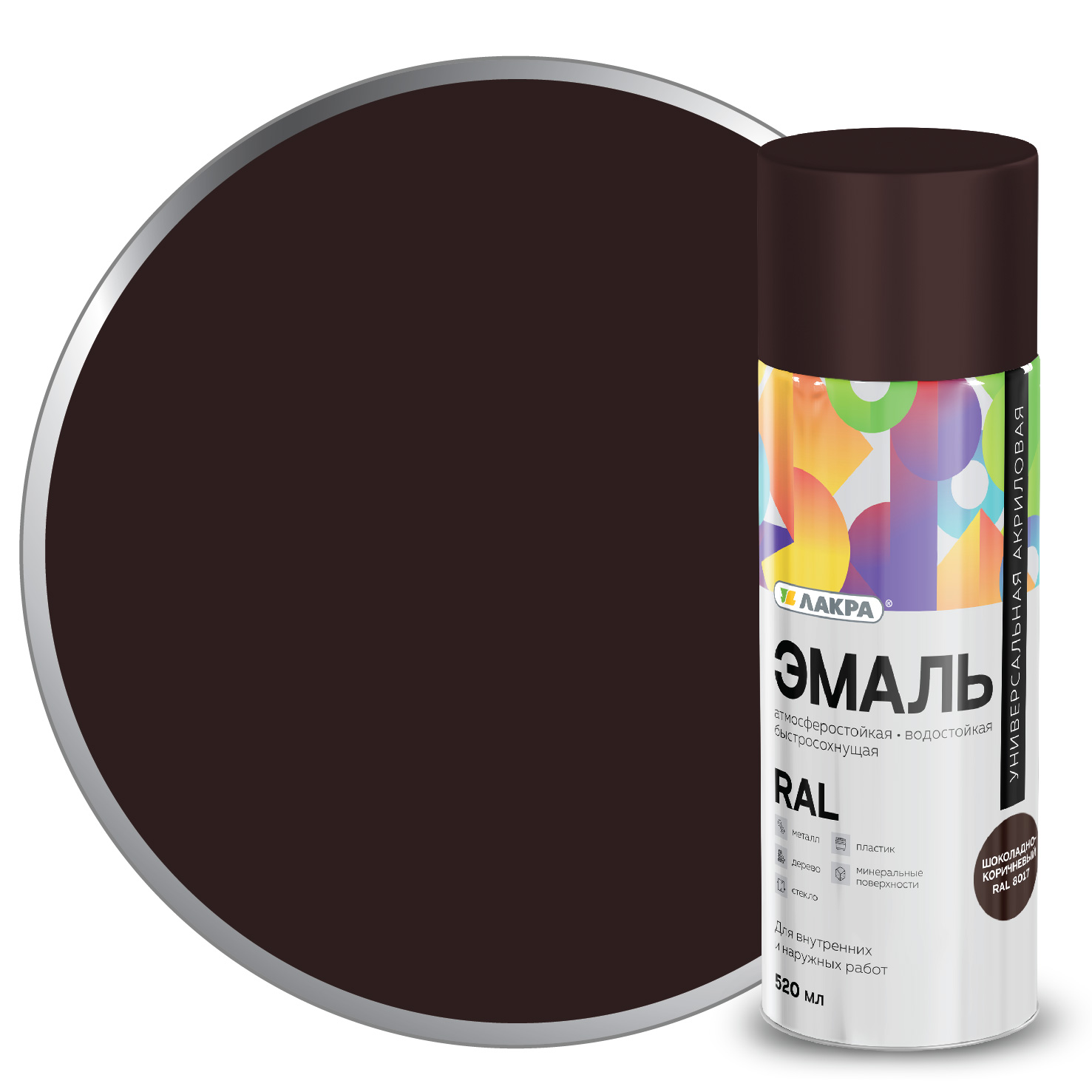 Эмаль аэрозольная ЛАКРА RAL акриловая RAL8017 шоколадно-коричневая 520мл