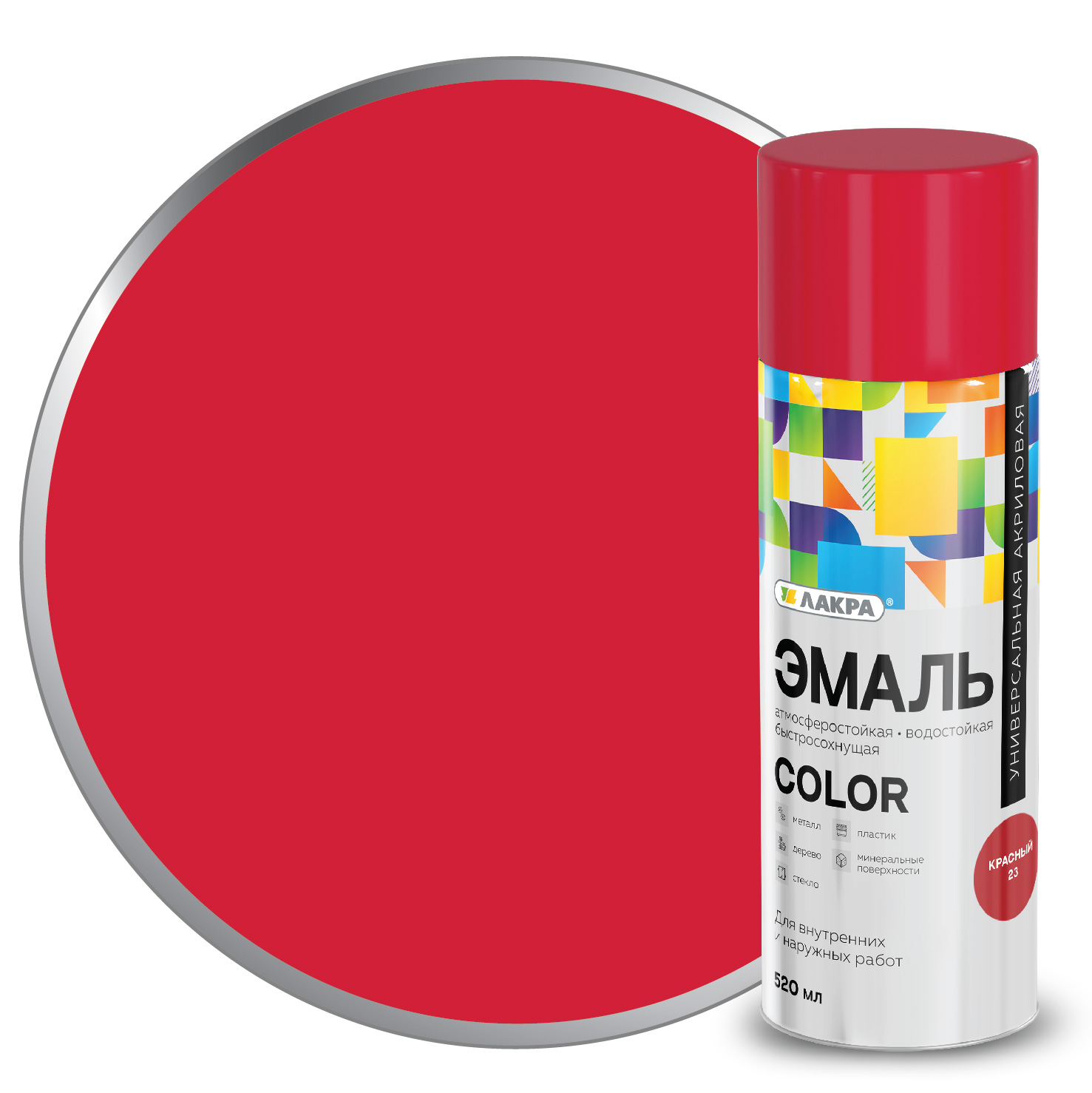 Эмаль аэрозольная ЛАКРА COLOR акриловая Красный(23) 520мл