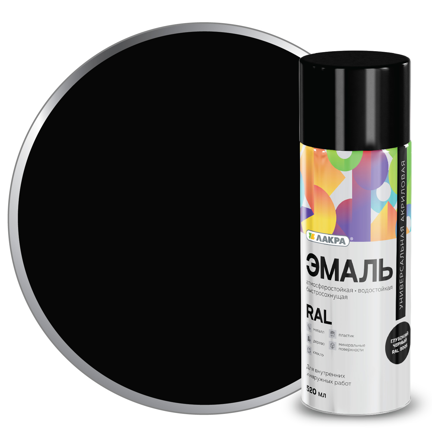 Эмаль аэрозольная ЛАКРА RAL акриловая RAL9005 глубокий черный 520мл