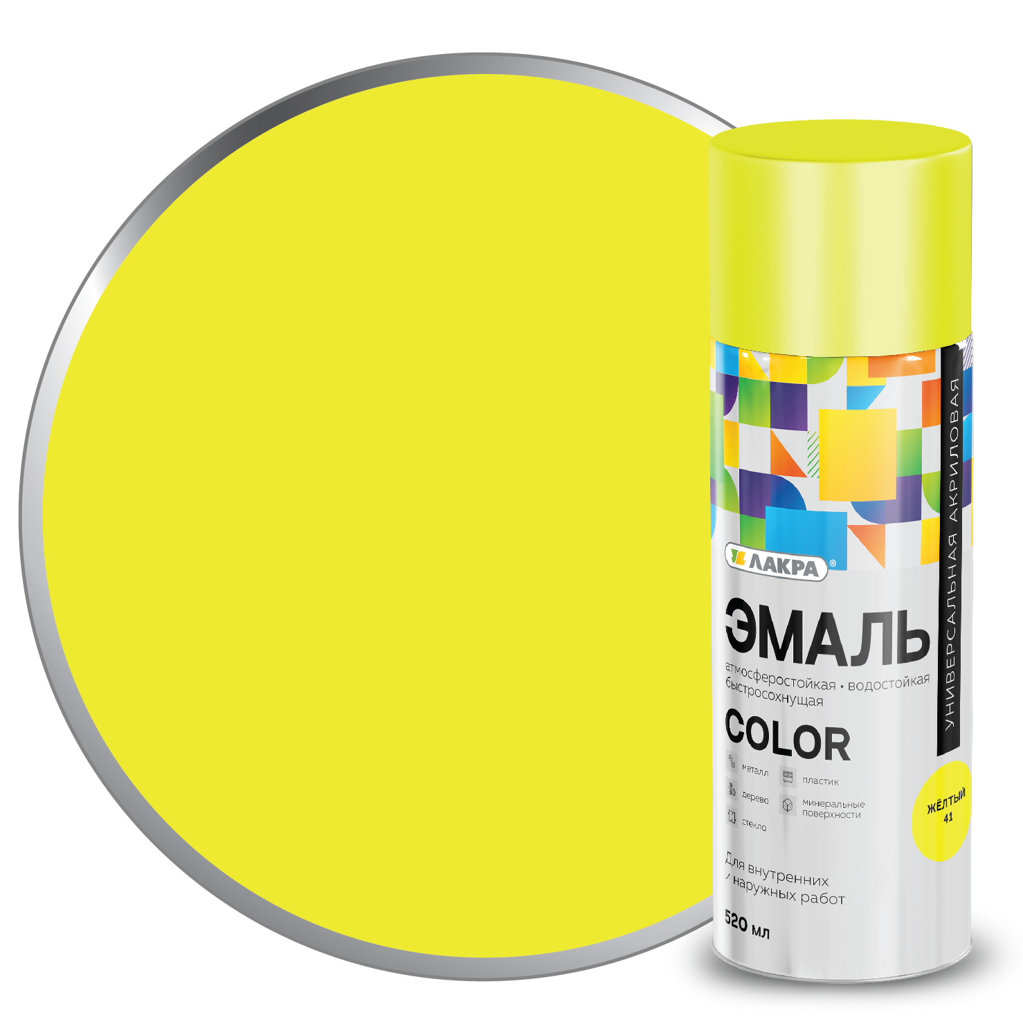 Эмаль аэрозольная ЛАКРА COLOR акриловая Желтый(41) 520мл