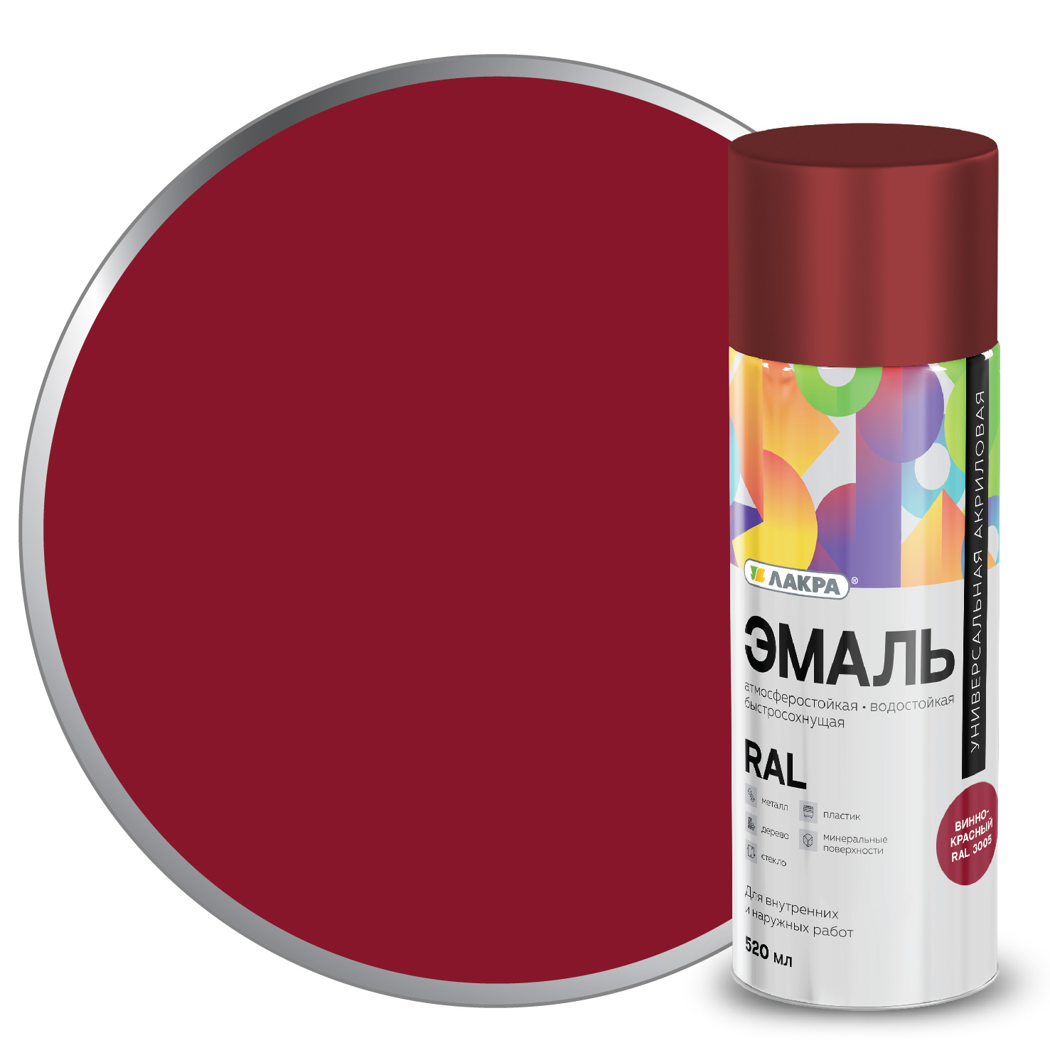 Эмаль аэрозольная ЛАКРА RAL акриловая RAL3005 винно-красная 520мл