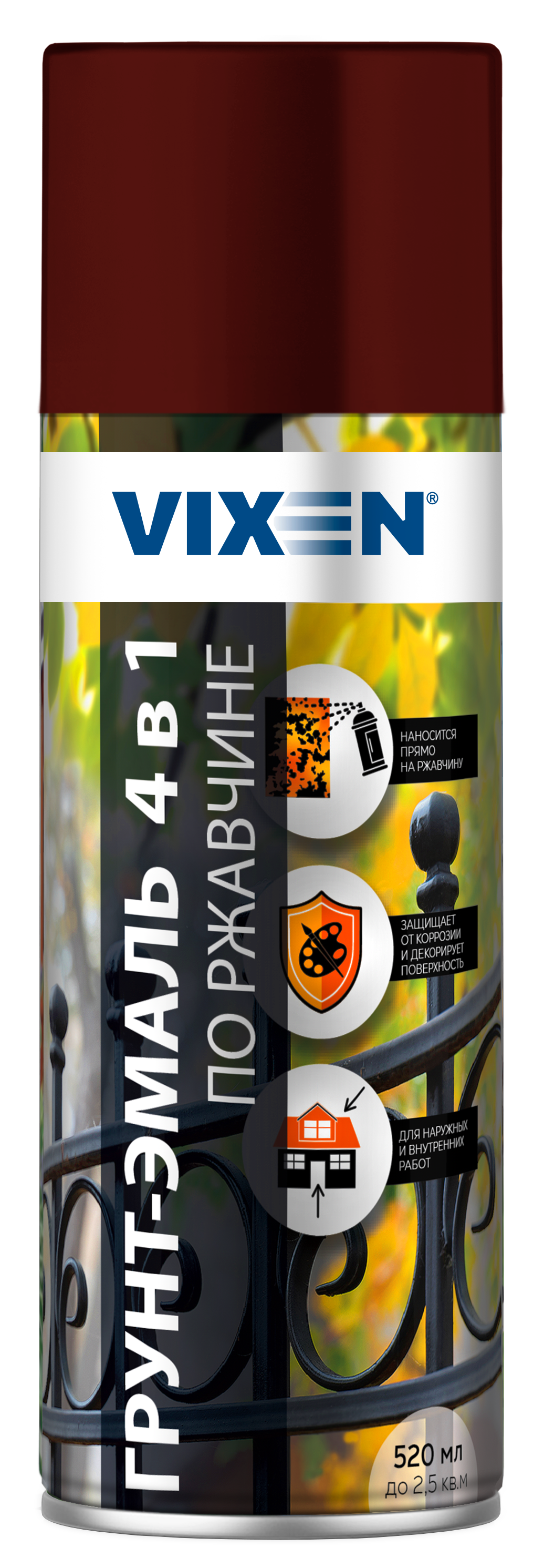 Грунт-эмаль по ржавчине VIXEN 4 в1 винно-красный RAL 3005 520мл