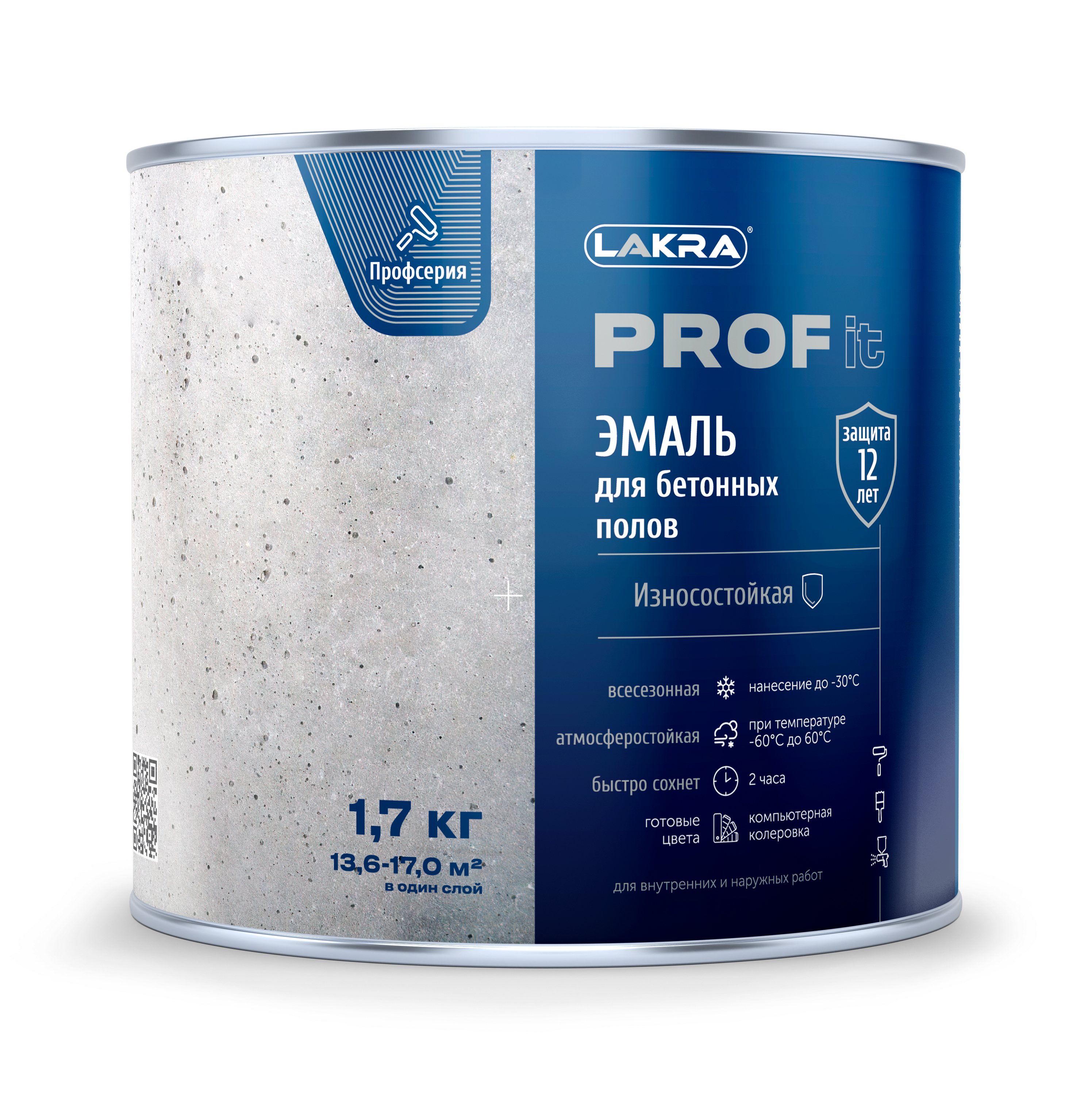 Эмаль для бетонных полов Лакра PROF IT быстросохнущая база C 1,7кг
