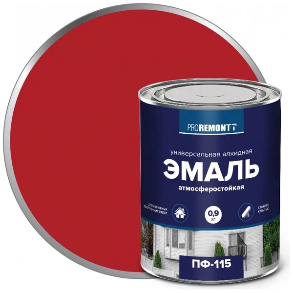 Эмаль PROREMONT ПФ115 Красная 0,9кг