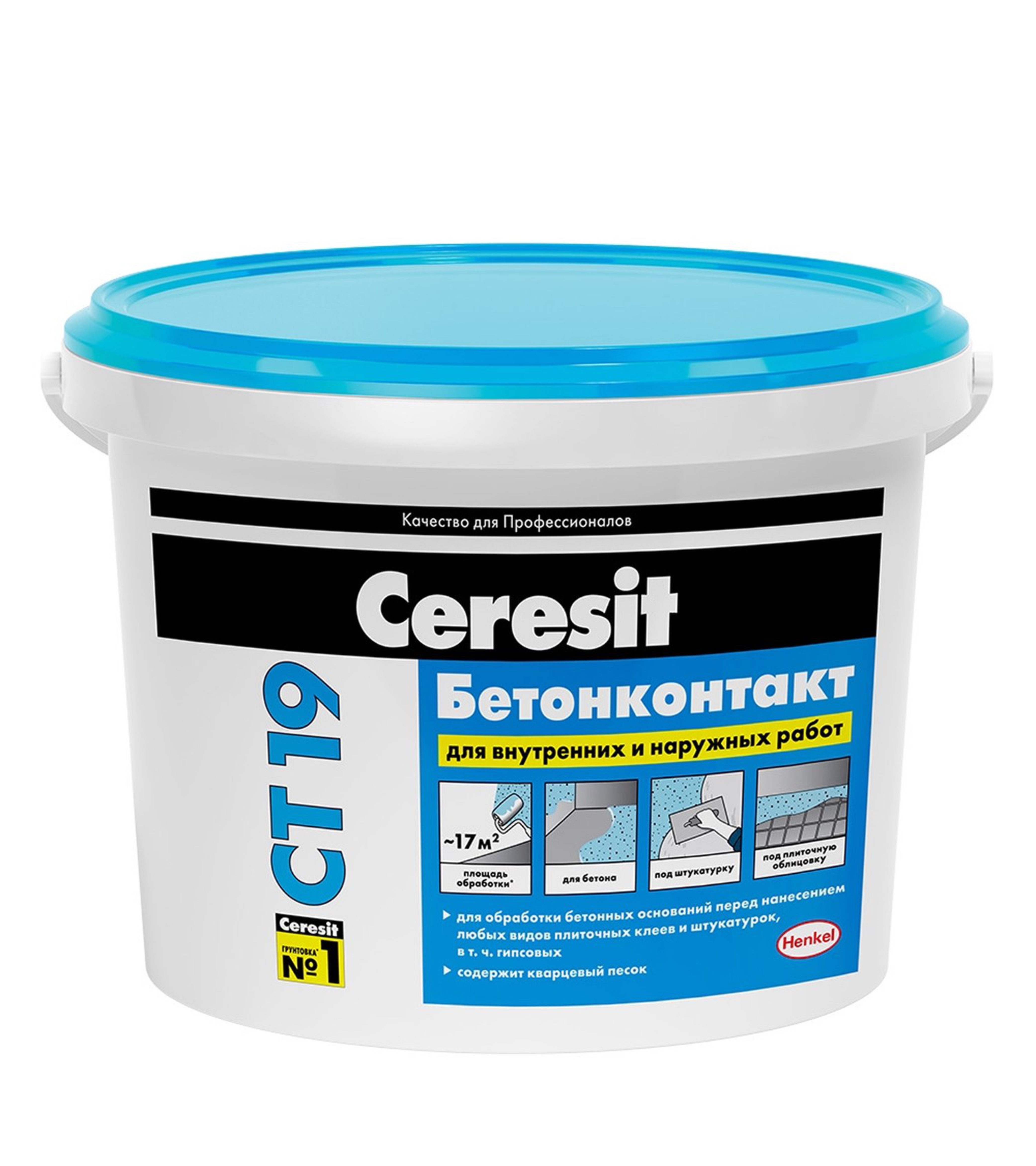 перед использованием, адгезионную грунтовку – CeresitCT19 «Бетонконтакт», необходимо тщательно перемешать. Грунтовку наносят при помощи кисти, валика или щетки. Номинальная температура воздуха для нанесения - +20C при относительной влажности воздуха 55%. При таких условиях грунтовка высыхает в течении – 4 часов. После полного высыхания адгезионная грунтовка способна нести механические нагрузки и пригодна для нанесения последующих слоев.Работы по грунтованию необходимо проводить при температуре основания от +5C до +30C и относительной влажностью воздуха 80%.