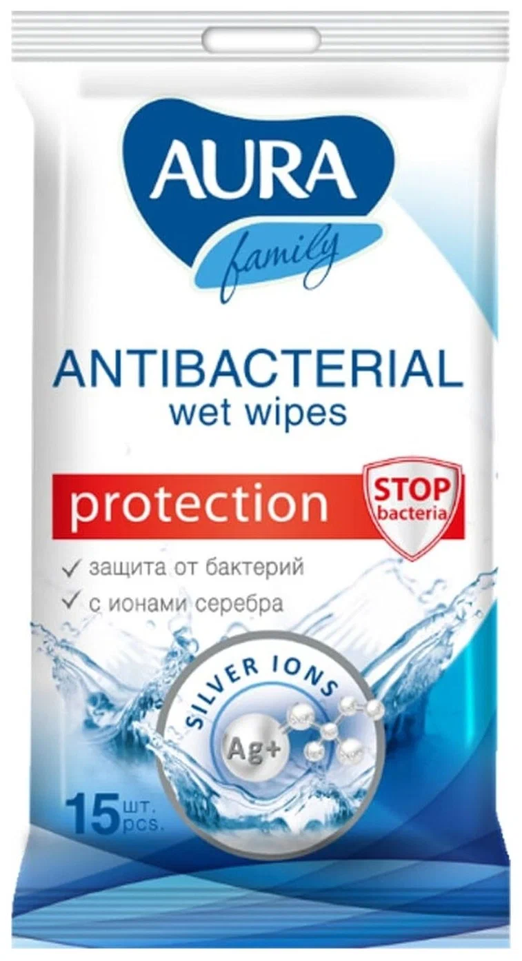 Салфетки влажные АУРА в ассортименте 15шт