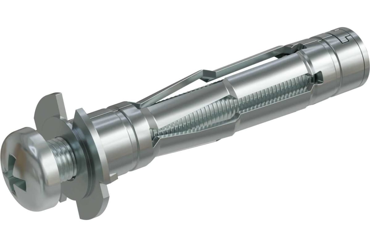 Монтаж: в материале сверлится отверстие соответствующего диаметра, очищается от крошки оставшейся после сверления, вставляют анкер. И если речь идет о стальной цанге, то необходимо сначала расклинить ее. Внутри анкера имеется стержень, с помощью керна по сердцевине цанги ударяют несколько раз пока она не фиксируется в материале, после чего вкручивают шпильку или болт. Если речь идет о латунной цанге то предварительного расклинивания не нужно, анкер вставляют в отверстие и вкручивают резьбовую шпильку или болт.