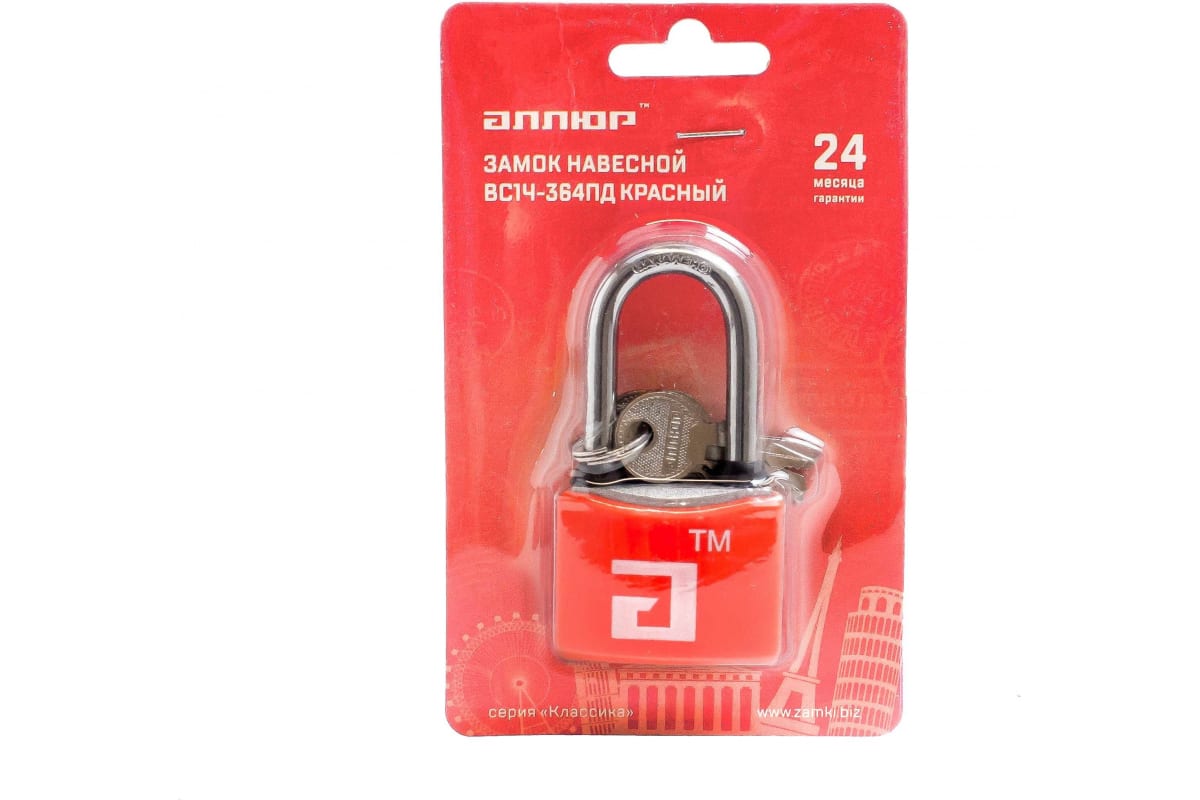 Замок навесной АЛЛЮР ВС1Ч-364ПД КРАСНЫЙ 5кл.d6мм дл.душка