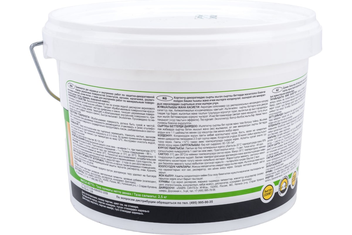 Высококачественный лак на основе водной акриловой дисперсии. Придает деревянным поверхностям красивый декоративный вид. Обладает высокой скоростью высыхания, что дает возможность окрасить поверхность в 2 слоя за одни сутки.