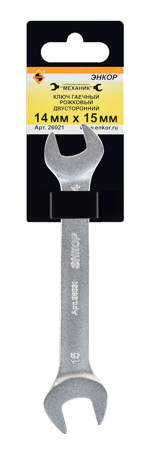 Ключ гаечный рожковый двусторонний Энкор 14х15 26021