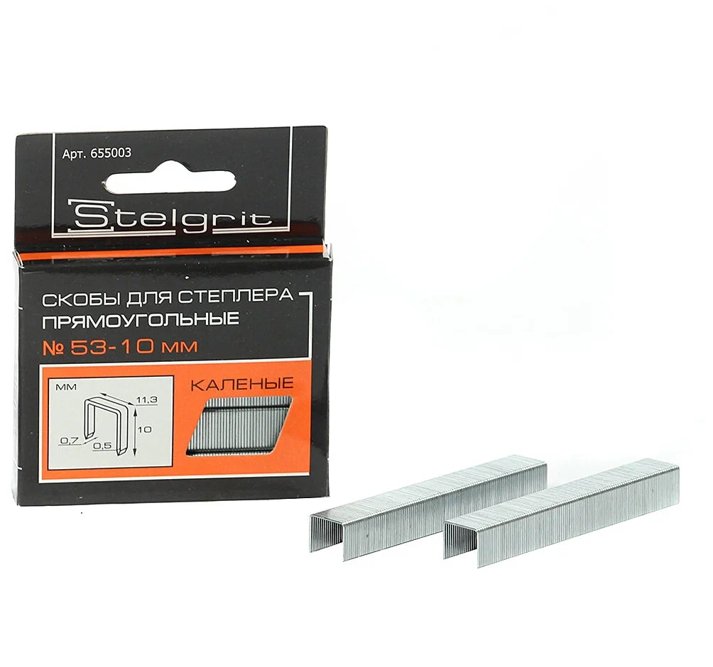 Скобы для степлера Stelgrit 10мм тип 53 1000штук 655003