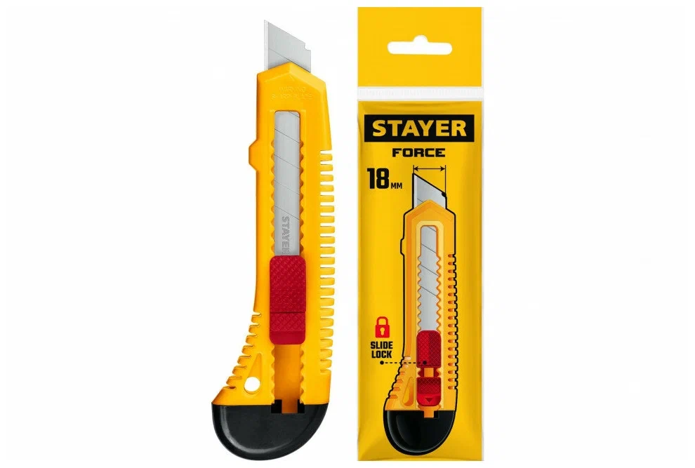 Нож STAYER FORCE-M с выдвижным лезвием, ударопрочный пластик