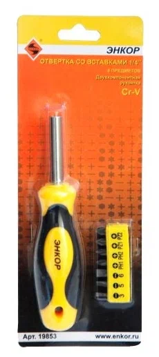 Отвертка Энкор 1/4" со вставками 8 предметов
