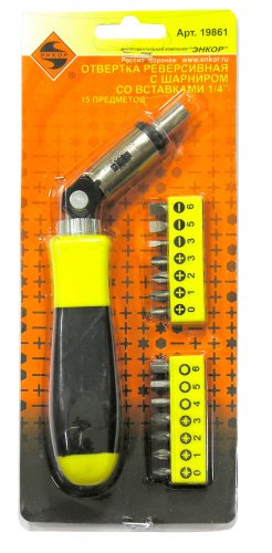 Отвертка Энкор реверсивная с шарниром со вставками15 предметов