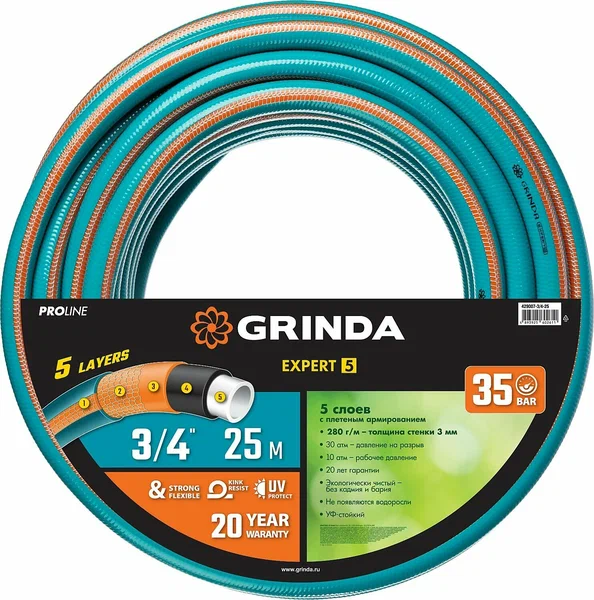 Шланг поливочный армированный GRINDA EXPERT 5 3/4х25м 429007-3/4-25