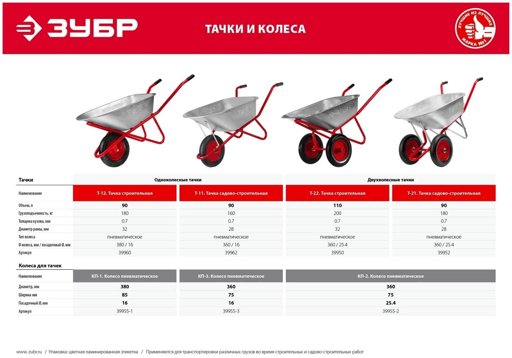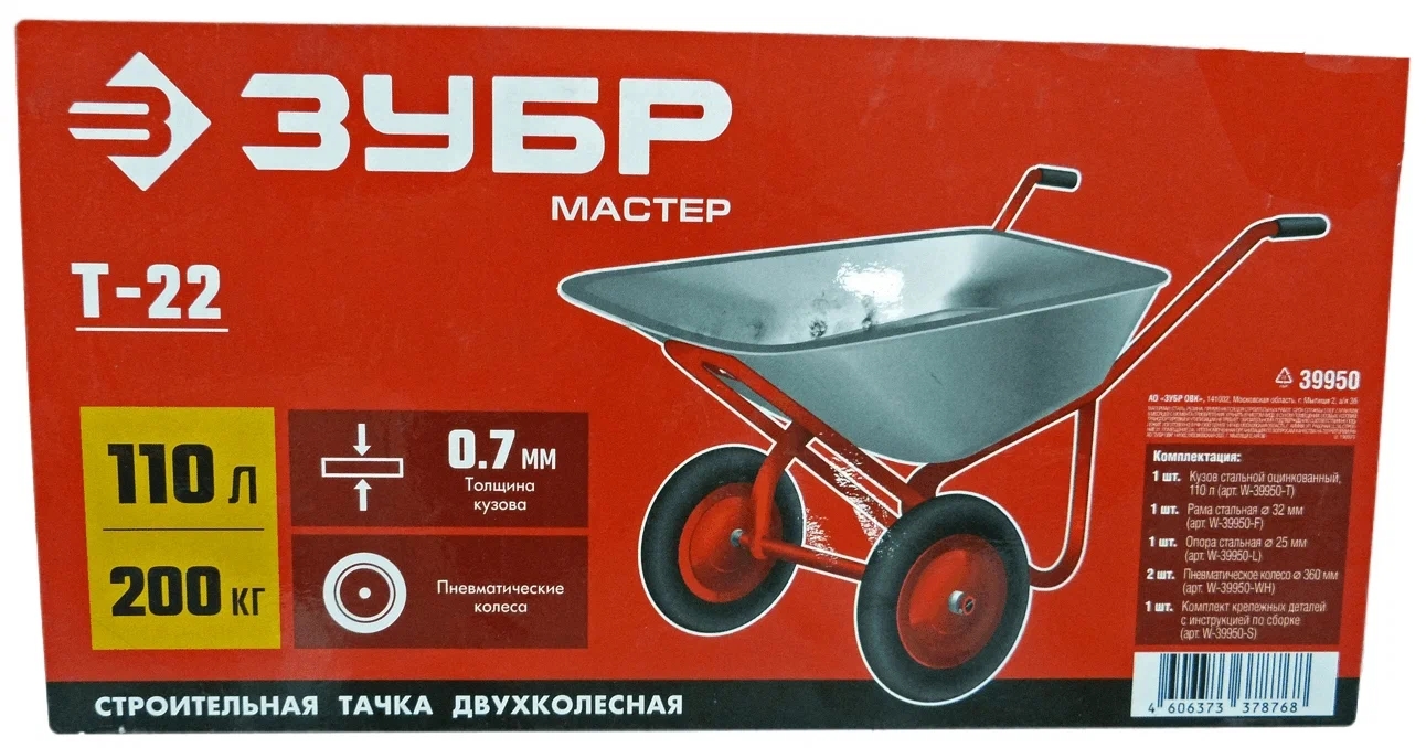 Тачка строит. ЗУБР Т-22 двухколесная, 200кг