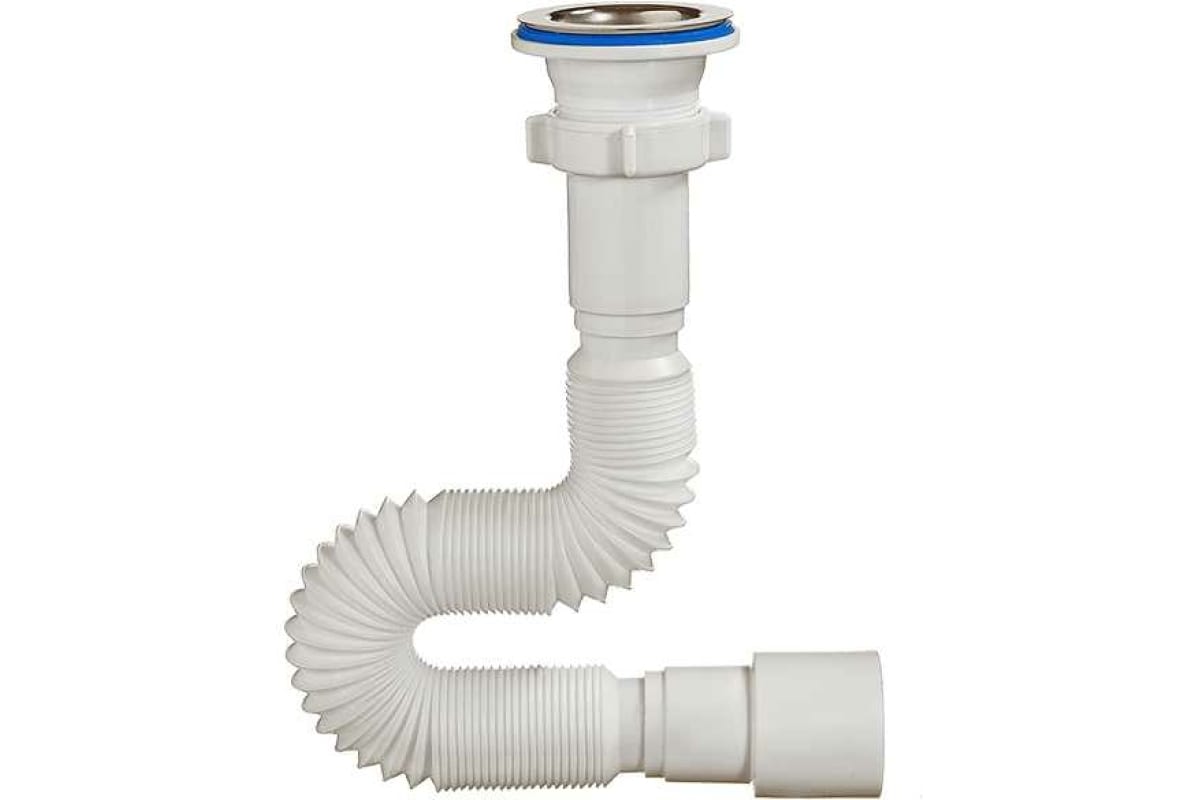 Сифон для кухни А-4010 с одним отводом переливом гибкой трубой 1 1/2 40 ОРИО