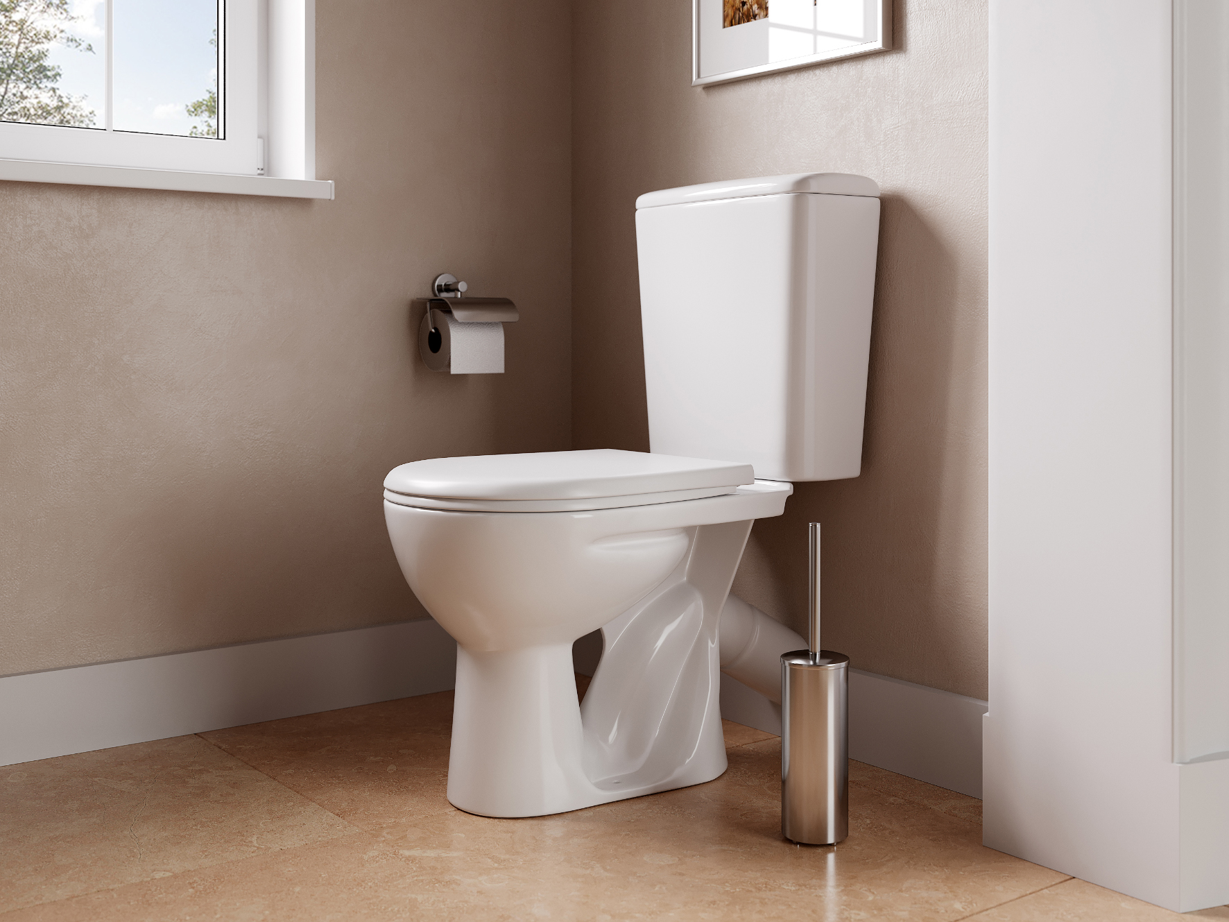 Унитаз-компакт Santeri Вест белый, нижний подвод, косой выпуск 1/реж