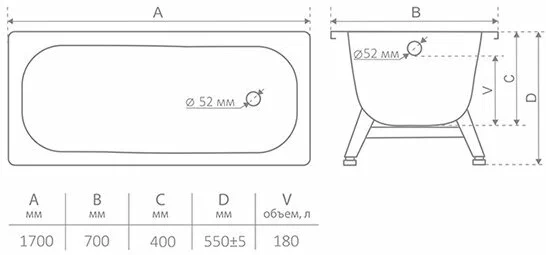 Ванна Аntika сталь 170х70 с ножками