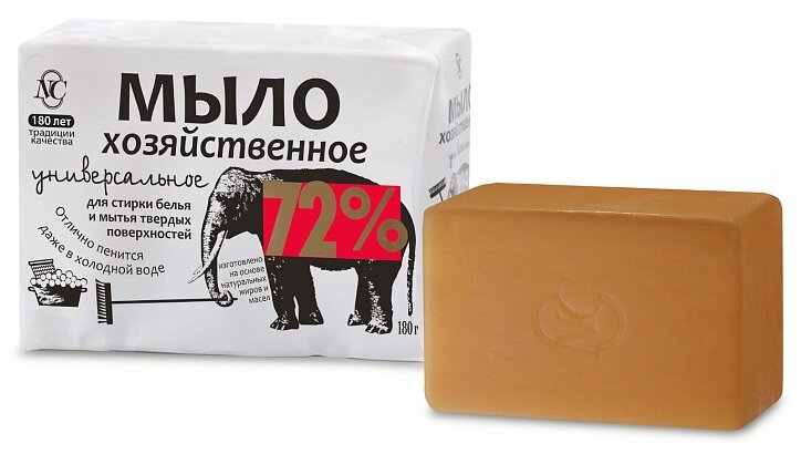 Мыло хозяйственное 180гр 72% белое универсальное в обертке, Невская косметика