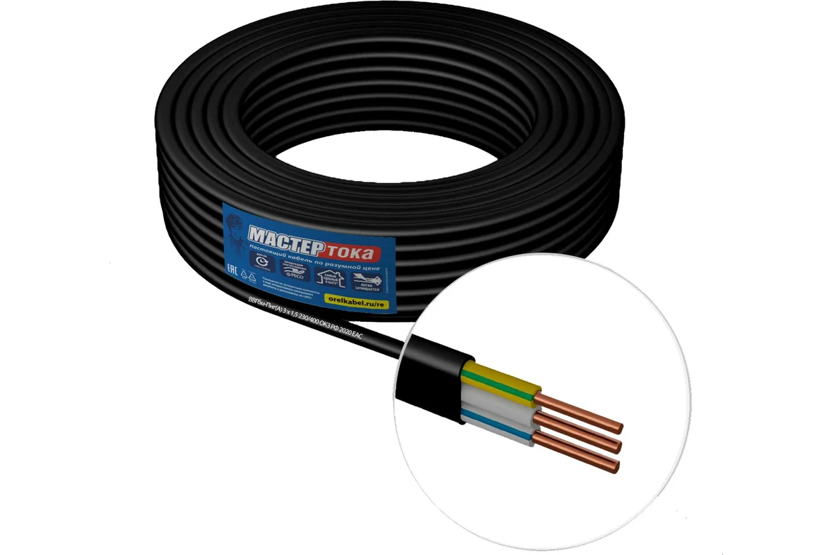 Кабель ВВГбм-Пнг(А) 3Х1.5 чер 50м Мастер Тока ТУ