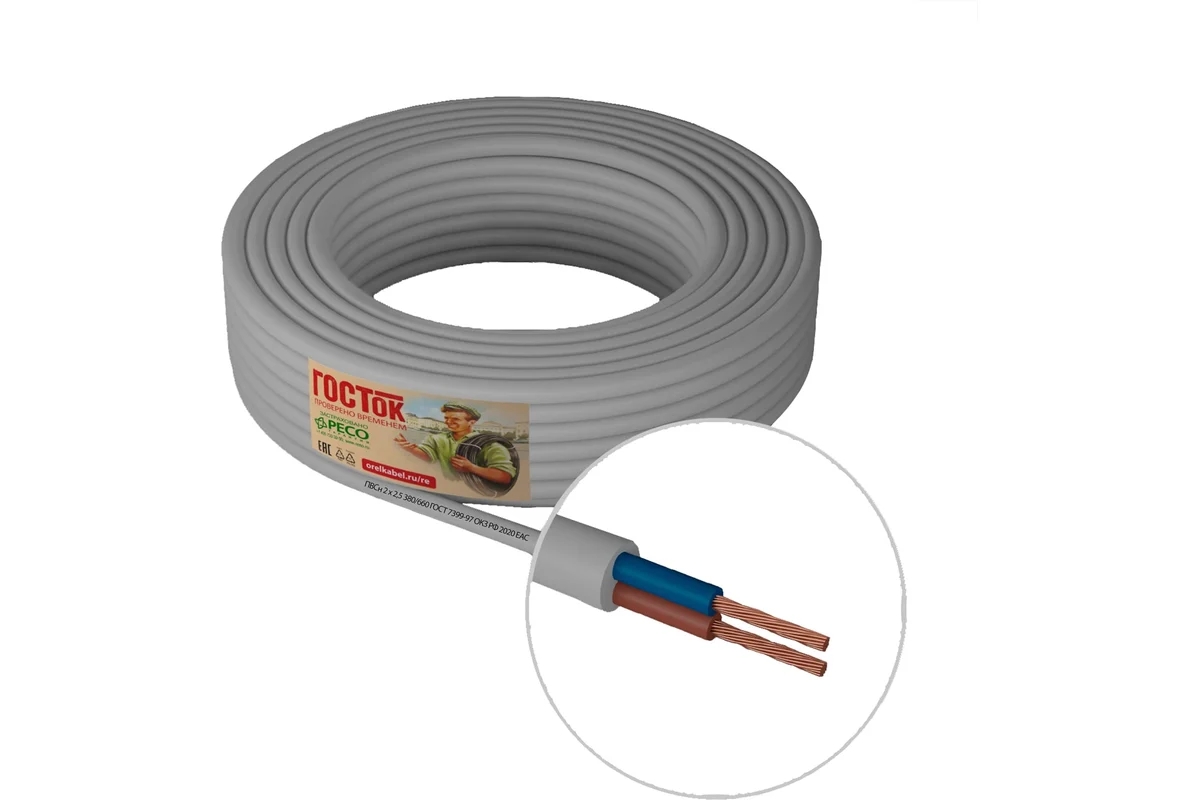 - Провод ПВСн 2Х2.5 бел 5м ГОСТок