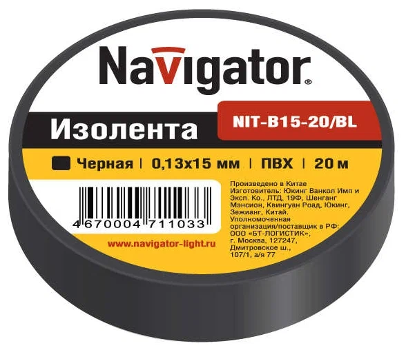 Изолента Navigator ПВХ 15мм*20м Жёлто-зеленая