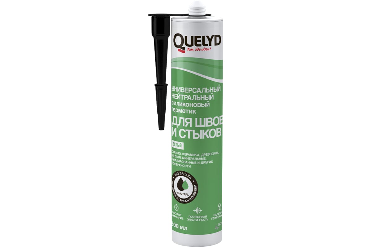 - Герметик QUELYD универсальный силиконовый белый 300мл
