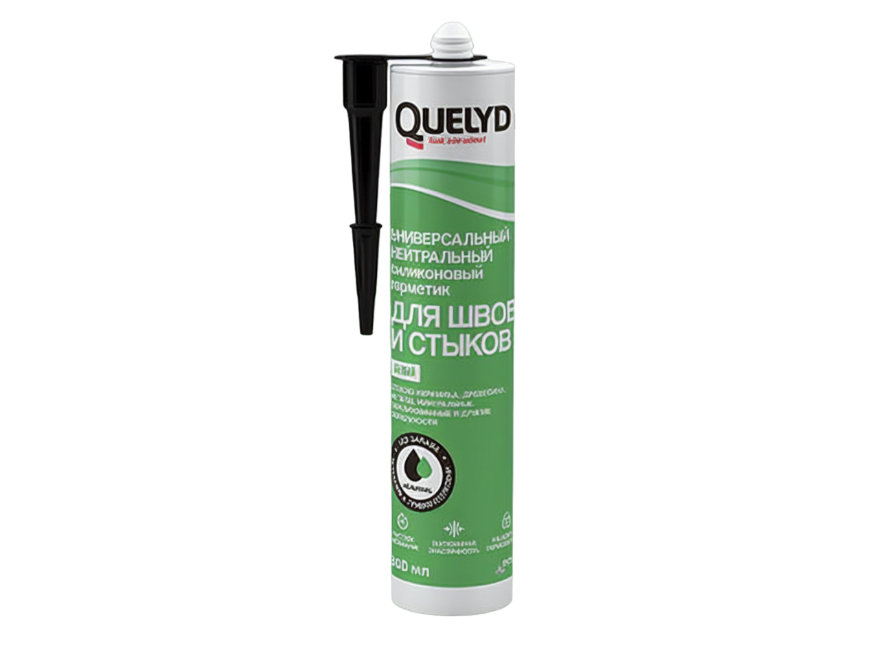 - Герметик QUELYD универсальный силиконовый прозрачный 300мл