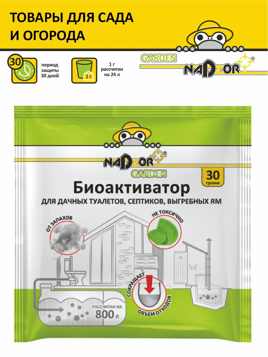 Биоактиватор для туалетов, выгребных ям, септиков Nadzor Garden, порошок 30 грамм BIOWC3