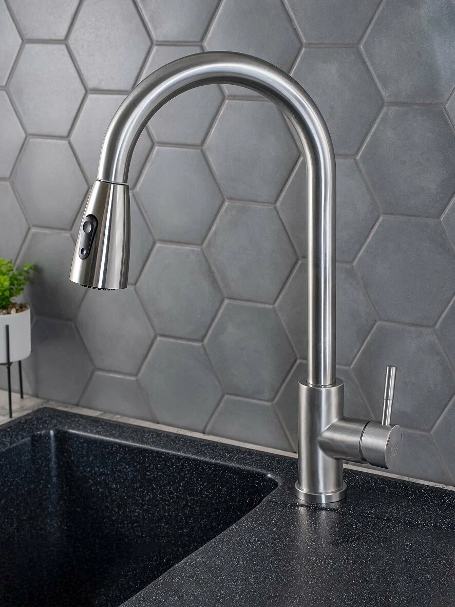 Смеситель для кухни РМС SUS124-017F-2 с выдвижным изливом