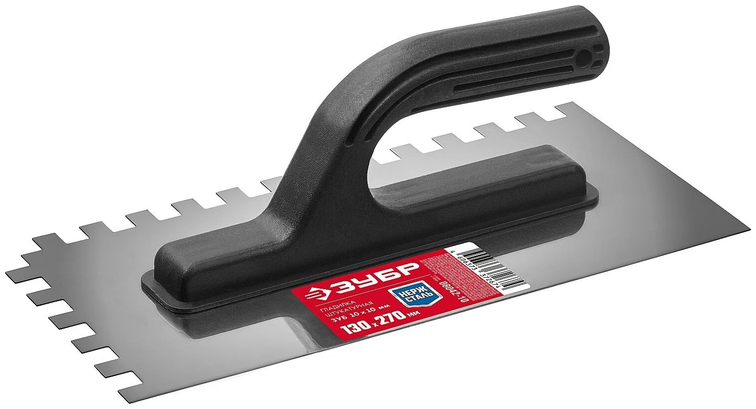 Штукатурная гладилка, ЗУБР 130х270 мм, 10х10 мм, зубчатая нержавеющая с пластиковой ручкой